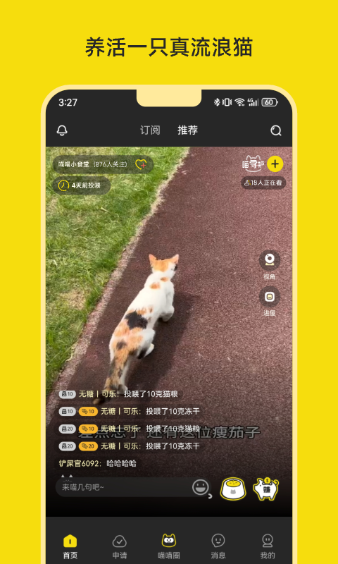 2、大家能够在这里共同喂养一只真的流浪猫,和其他网友一起照料和关爱它;