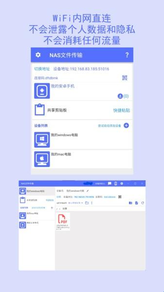 NAS文件传输是一款局域网文件传输软件,打破传统传输方式,不需要数据线,支持各个平台的文件共享传输,其传输速度也是非常快的,其传输文件格式没有限制,以及传输过程中所有内容隐私不会泄露,其质量以及稳定性都是非常不错的,有需要的小伙伴们快来下载试试吧!