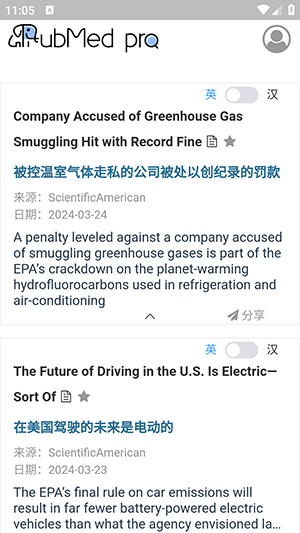 将翻译功能开启为用户展示各种医学文献的中文内容;
