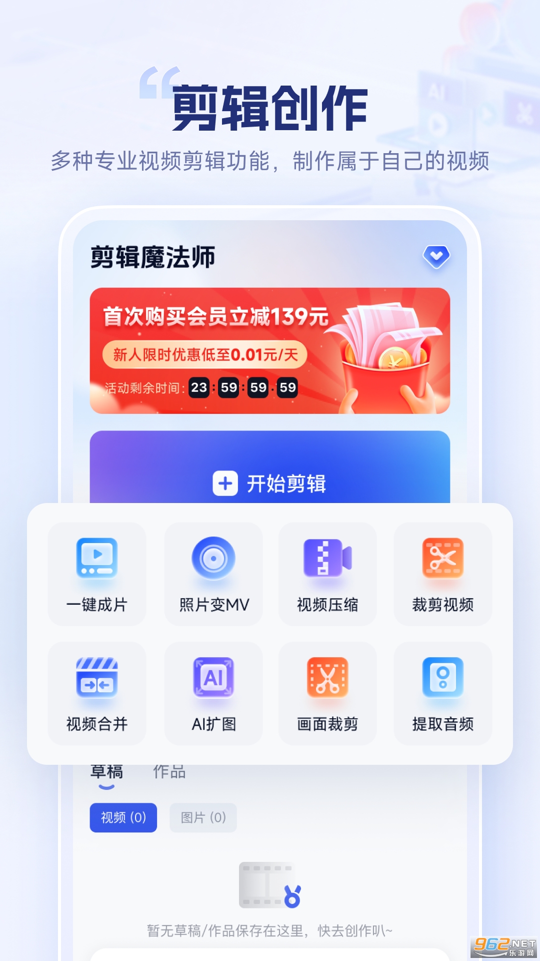 《剪辑魔法师》是一款集视频剪辑、合并、压缩及图片编辑于一体的全能型创作工具,支持MP4、AVI、MOV等多格式处理,适配从新手到专业创作者的多元需求,界面友好,功能覆盖全面,从基础剪辑到AI创意应用均有深度支持,操作逻辑清晰易上手,既适合新手快速产出,也能满足专业用户精细创作需求,是移动端视频编辑的优质选择。