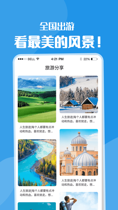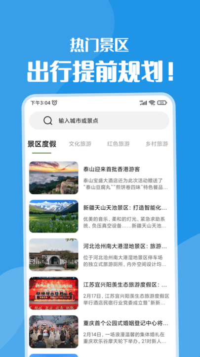 1、精选国内热门旅游目的地,体验当地特色旅游项目,领略祖国的大好河山。
