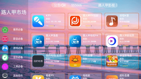 路人甲市场是一款能够完美适配电视端的应用市场软件,界面简洁清爽,汇集海量优质视频软件资源,类型丰富多样,内置详细下载和使用教程,运行稳定流畅,全部下载资源都是免费提供给用户下载使用的,感兴趣的小伙伴们快来下载试试吧!