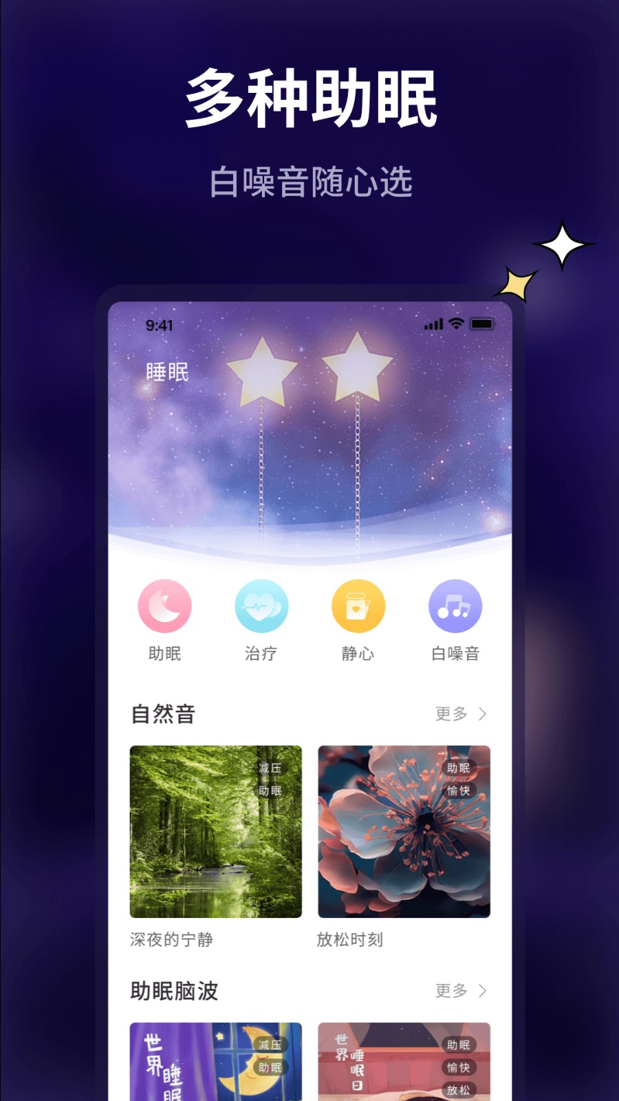 3、提供睡前故事、白噪音及ASMR音频资源,满足不同人群的助眠需求,营造理想的入睡氛围。