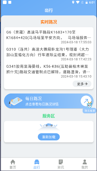 5、智慧服务区:提供服务区导航、加油站、充电桩、汽车维修等信息。