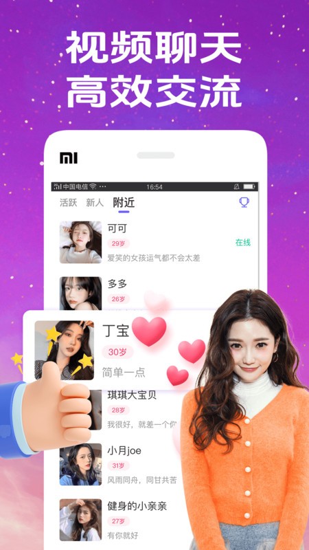 该应用采用智能匹配算法,根据用户的个人资料和兴趣爱好,为用户推荐合适的对象,提高了社交成功率。旨在帮助用户打破传统的交友限制,让交友过程更加有趣。
