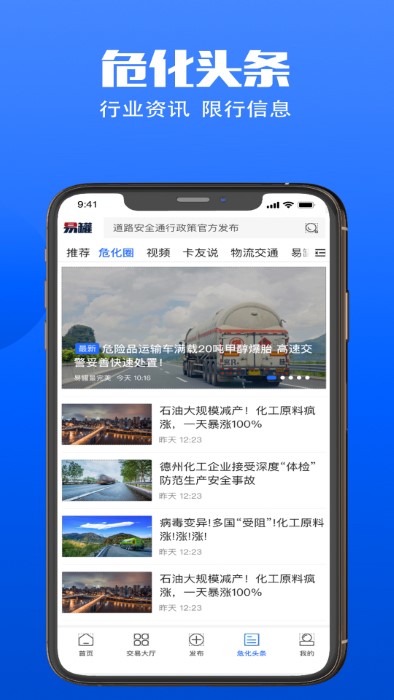 易罐危险品货运平台是一款主要提供危险化工品运输的平台,软件为用户们提供海量的货源和车源,让你能够放心的进行下单.高效匹配、实名认证、专业安全,让货主、车主都能找到自己想要的.