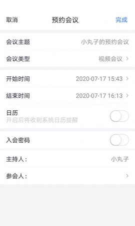 2、【开会简单】使用固定好记的会议密码:输入主持人密码召开会议,输入参会人密码加入他人的会议