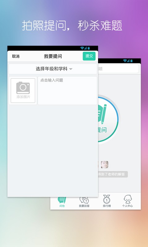 1、拍照提问:被学习难题挑战,需向学霸求助?拿手机拍照上传题目,学霸马上提供答案详解。