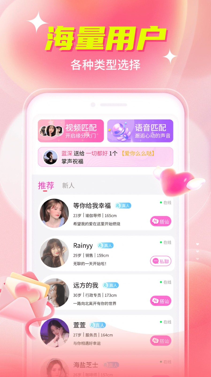 1、海量用户,各种类型选择,每次开启互动都是真实有趣的;
