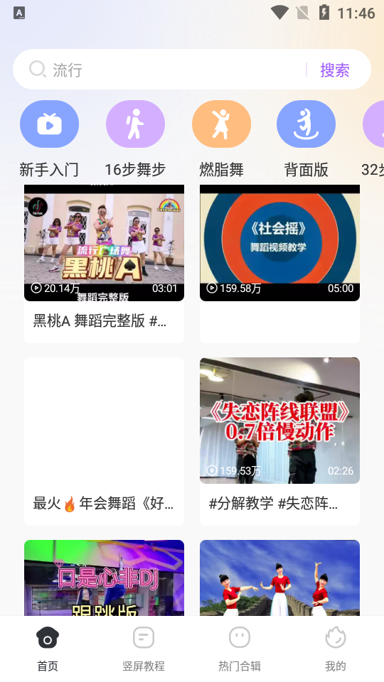1、热门排行:展示热门广场舞曲目和教学视频,方便用户选择学习;