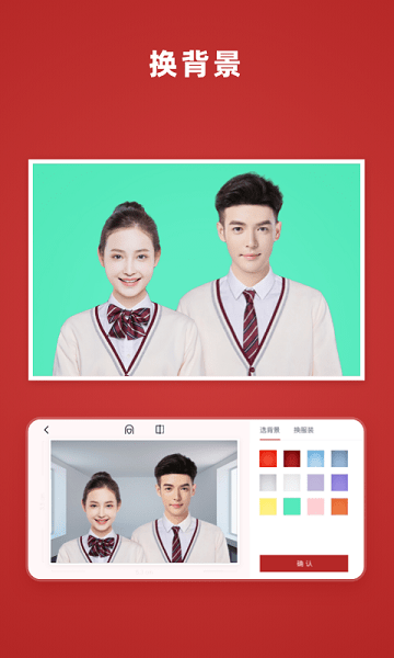 12色背景,除满足结婚登记照的红底/蓝底常规需求外,还增加了高级色和糖果色,可根据不同的使用场景任意切换。