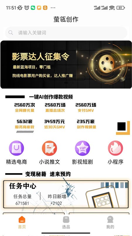 3、还有丰富的创作任务,用户们可以更加轻松的进行视频变现。