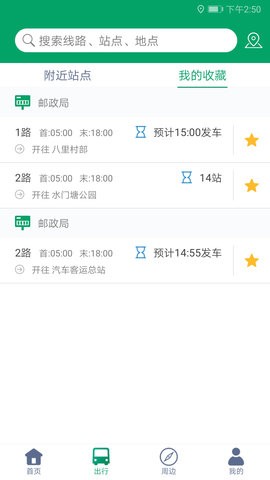 2、附近线路:精准查找附近线路,自由切换乘车站点,轻松选择乘车站点。