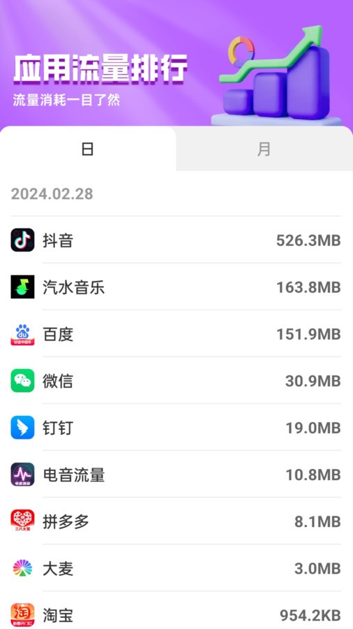 2、强大的数据识别信息,让各位可以及时的查看自己的流量使用情况!