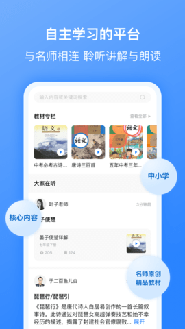 平台吸引优秀的老师发布内容和音频,孩子们可以聆听到清晰正确的课文朗读。