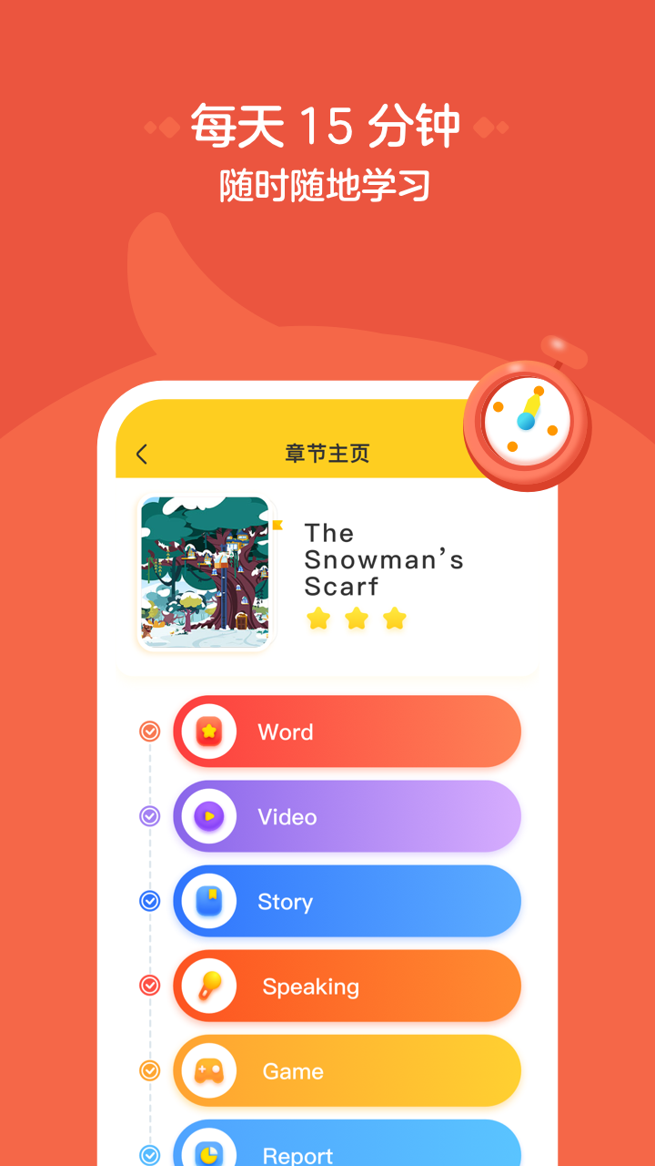 鸭鸭英语是一个为2-8岁儿童研发系统性学习英语的线上平台,融合了国际先进CLIL教学法,采用资深中外教结合的授课形式,每天15分钟,让孩子在有趣的课程中轻轻松松学习。