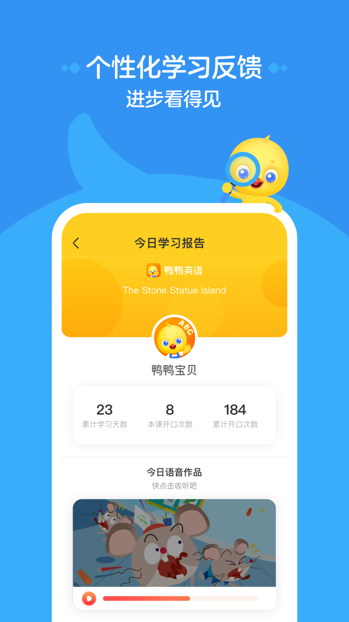 6. AI智能实时纠音,及时反馈,不放过任何一个提升机会+个性化学习反馈,帮助孩子及时查缺补漏 宝宝进步看得见。