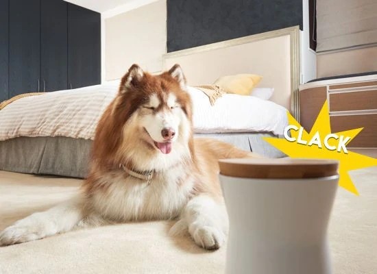 Furbo 在丢零食前所发出「喀哒」声,正是模仿训练狗狗所发出的响片声。响片训练是指使用制约增强的方式鼓励狗狗做正确的事(例如:坐下、停止吠叫)。当狗狗习惯後,你就能透过 Furbo 远端奖励他罗!