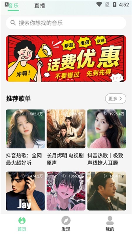 2、在线音乐:用户可以通过搜索或浏览推荐的音乐,收听在线可流媒体播放的音乐。