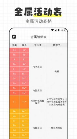 3、提供金属活动表查询功能,让用户了解金属的反应活性;