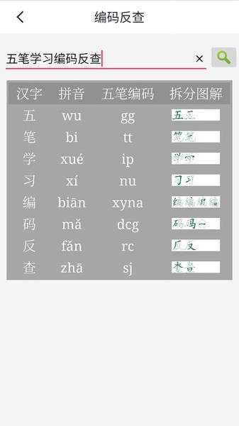 2、提供编码反查功能,具有汉字拆解图,