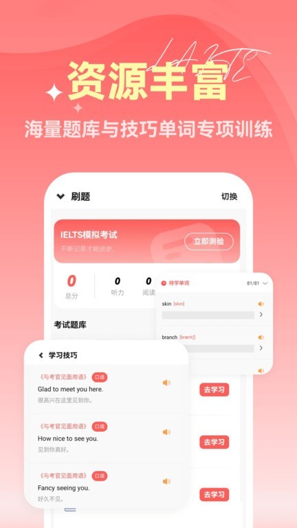 2、优质教材:精选高质量教材,覆盖雅思各个考试部分,以便系统学习;
