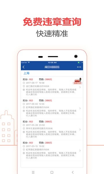 新增支持全国200+城市在线违章代缴代办,极速办理。