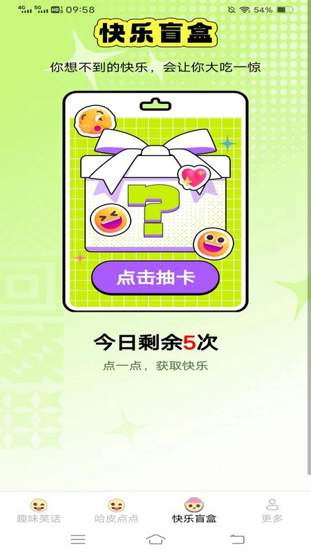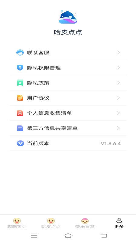 哈皮点点是一款专门为用户提供各种轻松幽默的搞笑段子的娱乐软件,内置海量笑话素材,类型丰富多样,用户可以根据自己的喜好自由筛选你喜欢的类型,一键轻松收藏,随时都可以浏览,平台也会实时更新最新素材,让你每一天都可以享受欢乐时光。