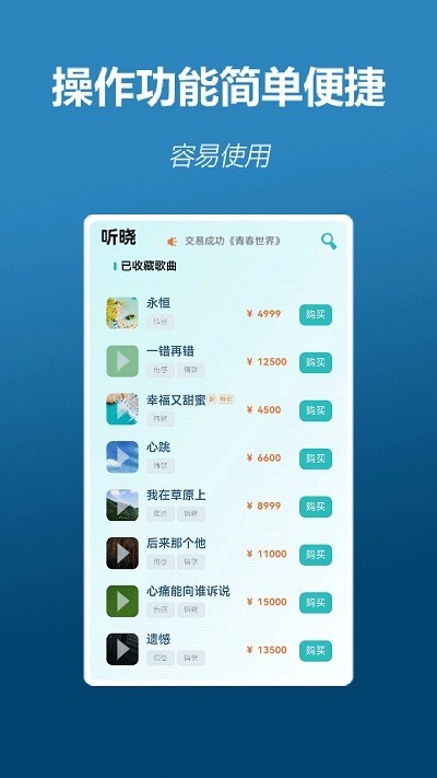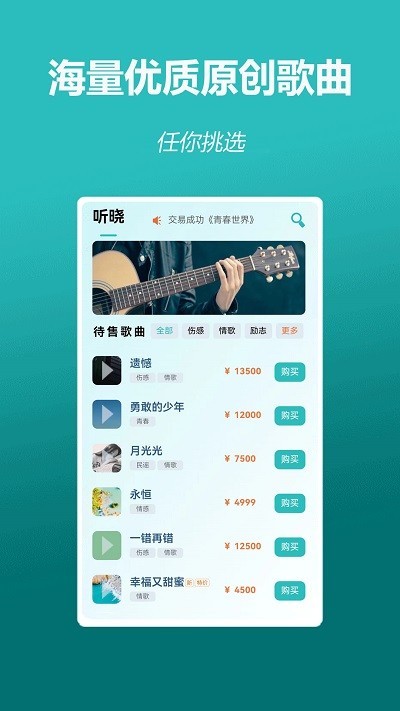 4、独家内容:听见音乐精选音乐内容,独家为你奉送。