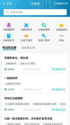 1、为工程人量身打造的求职招聘软件,所有的岗位和招聘单位都是对口的;