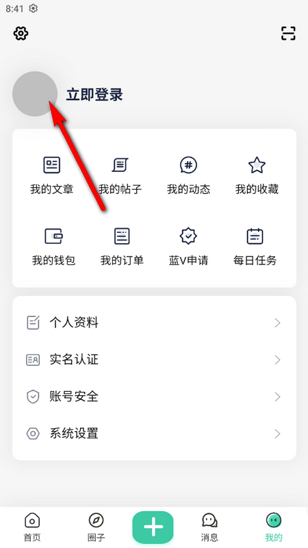 2、进入主页点击右下角的【我的】,选择上方【立即登陆】头像点击;