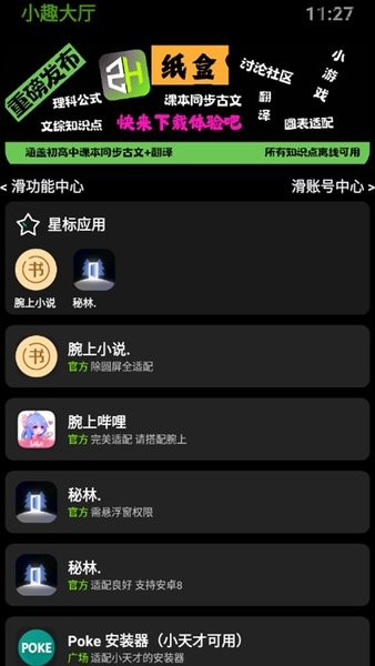 界面简洁易用:小趣空间拥有简洁直观的界面设计,用户可以轻松浏览和搜索应用,快速找到所需内容。