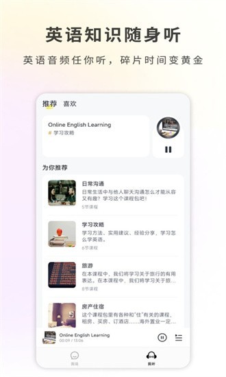 2、英语知识随身听,英语音频任你听,碎片时间变黄金。