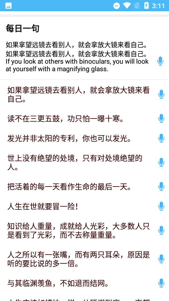 2、《轻松翻译》拥有每日一句功能,让你时时学习。