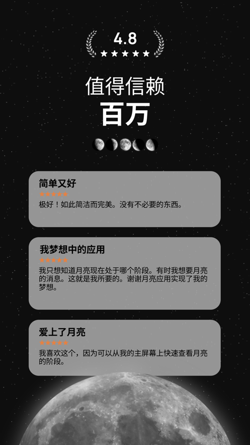 1、是一款帮助认识了解月亮的软件,不仅有3D月亮可以任意旋转放大缩小。