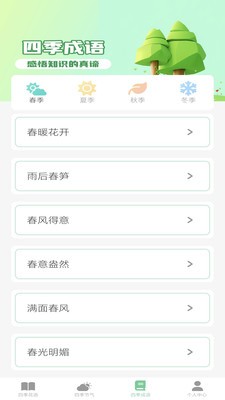 3、丰富的成语知识,也是不同季节的表达,通过成语来查看不同的季节。