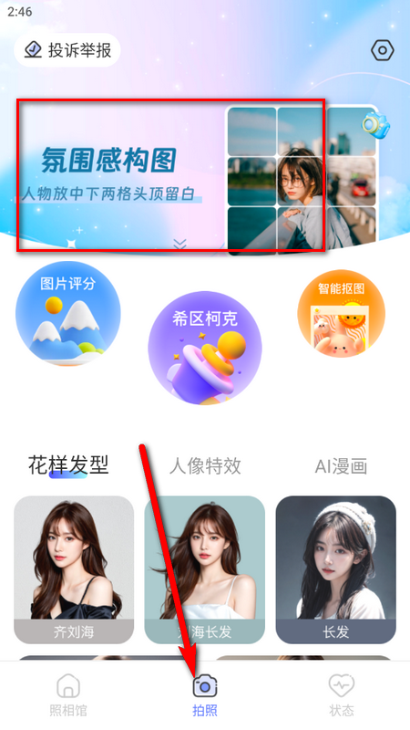 2.人像特效处理:识别人脸特征并对五官进行智能美化,还能修改发型和妆容。