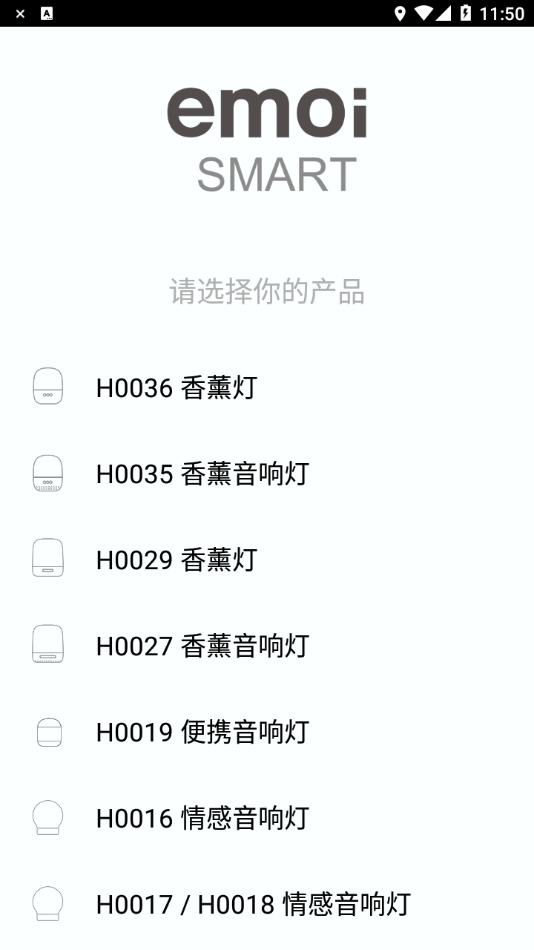 第一次进行连接时会需要进行产品选择,自带播放器的功能非常简单,播放自然音的同时,还可以打开香薰,为大家营造一个非常好的放松环境,灯光的玩法比较多,主要功能还是为了区分使用场景,快来下载试试吧!