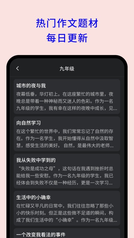 2、覆盖不同年级的作文库,让大家可以轻松的学习写作的技巧。