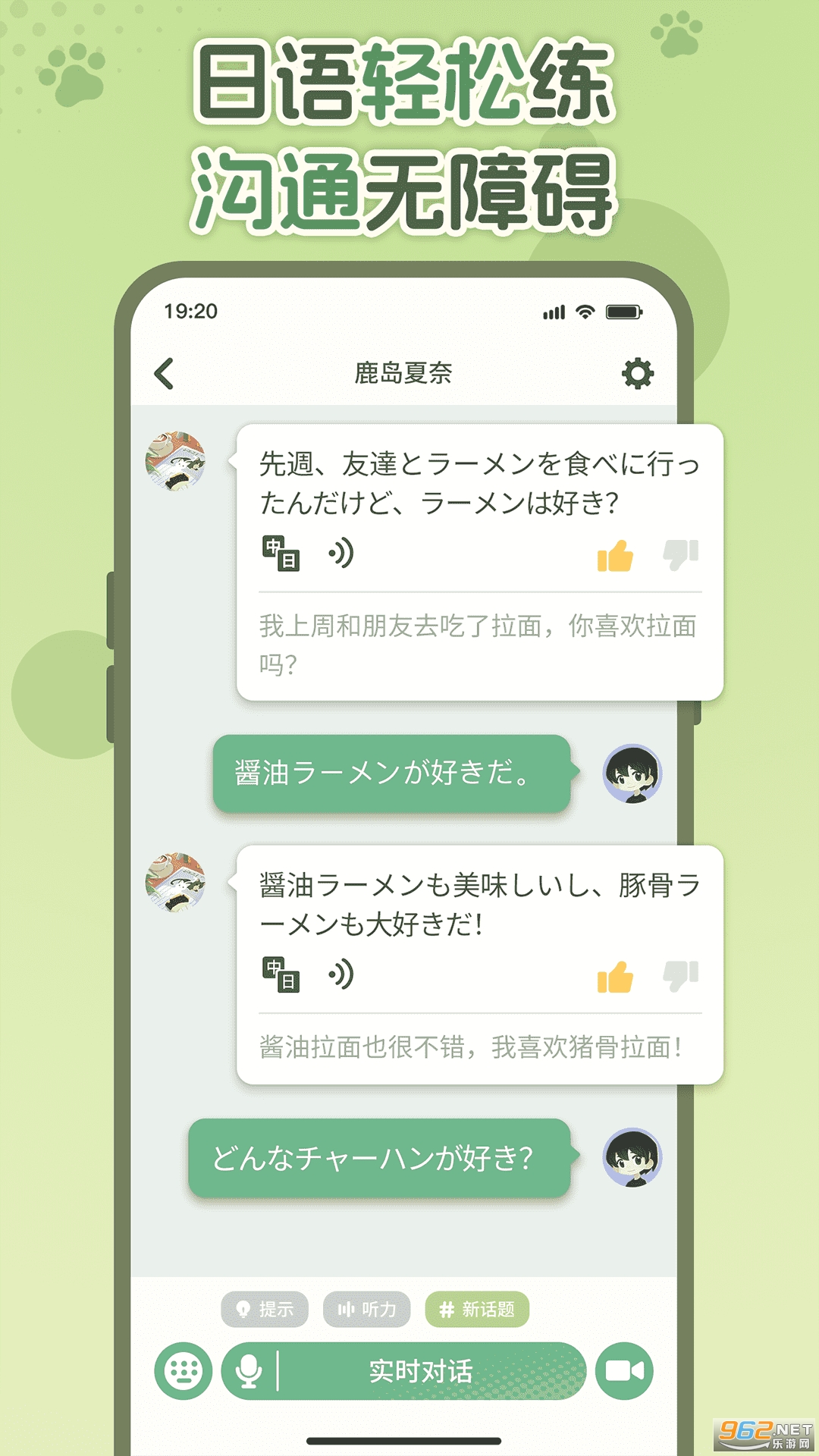 沉浸式动漫对话:与狐狸、鹿等卡通角色进行视频通话,模拟“点咖啡”等真实场景,提升口语流畅度;