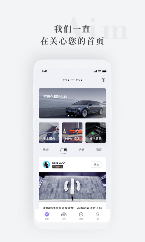 高合汽车一款手机智能服务软件,该软件为车主提供商店、汽车资讯、汽车问答、充电、家充桩、活动、广场、预约到店等众多服务功能,为用户带来方便快捷的服务平台。需要的点击下载吧!