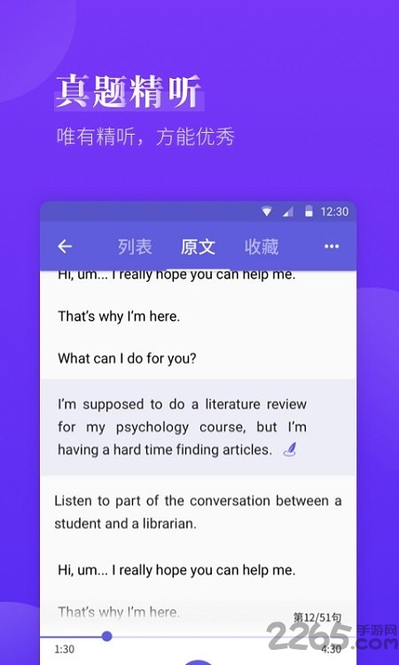 2、进入听力训练板块,从易到难完成听力题目,做完后查看原文和解析,精听错误部分,逐步提高听力理解能力。