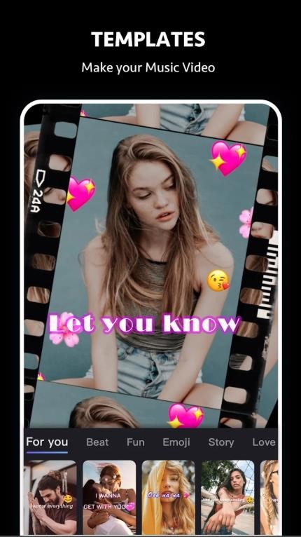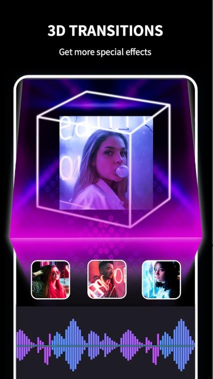 2、将您的照片和视频剪辑变成带有音乐和过渡的酷炫趋势视频!