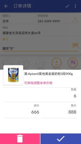 1、微商用户可以快速添加订单信息,随时都能灵活修改;
