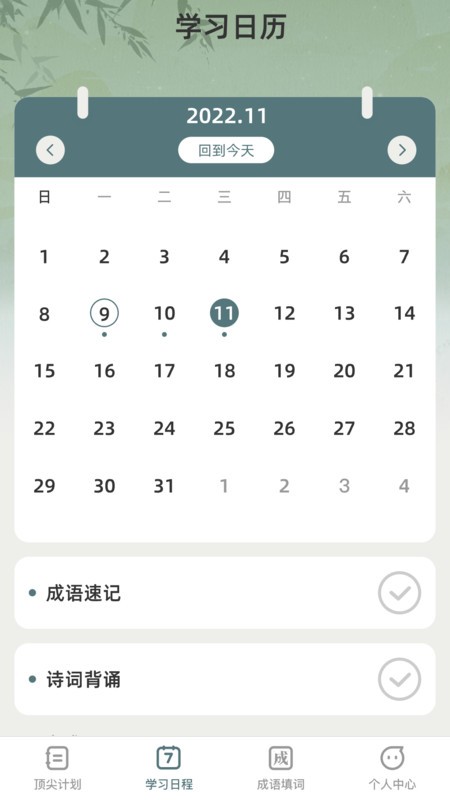 1、在这里可以为大家提供学习日历,让你直观的查看自己的学习进度。