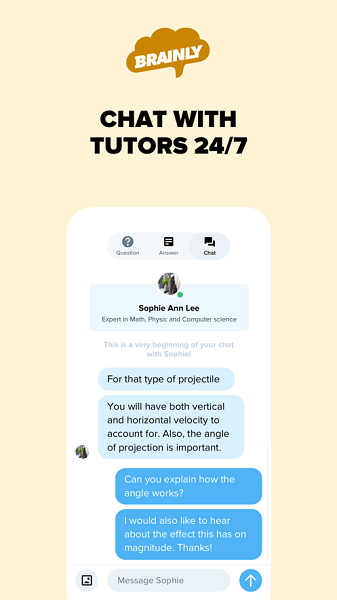 1、通过 Brainly Tutor(仅限数学和物理)从专业导师那里获得实时帮助