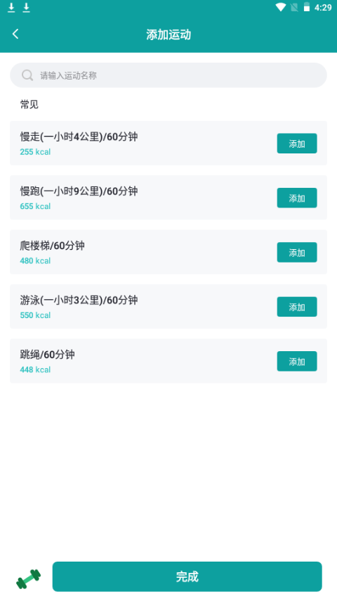2.用户可以输入运动类型和时长,计算出运动所消耗的热量。
