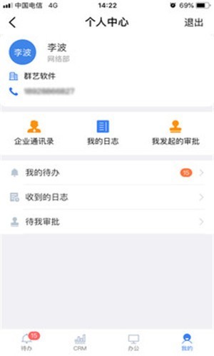 2、移动办公,日志、审批、日程管理、任务管理和公告管理等办公功能这里都有;