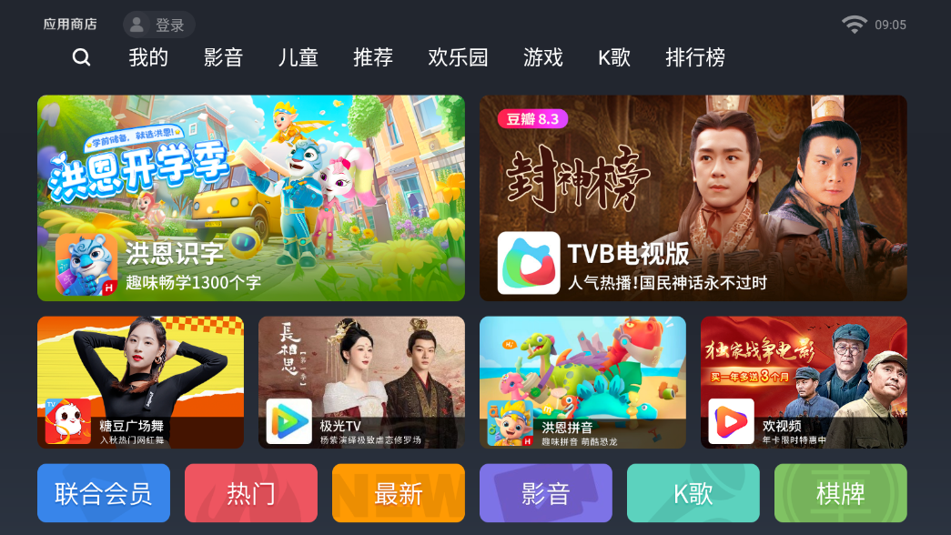 欢视应用商店是一款智能电视应用商店,下载该软件后小伙伴们可以在该平台上一键快速搜索获取到各种精彩特色内容,分类都是非常详细的,各种影音、游戏、教育、健身等等一应俱全,支持关键词搜索获取,非常的人性化,并且所有内容都是和手机端同步的,感兴趣的用户朋友们快来下载欢视应用商店app吧!