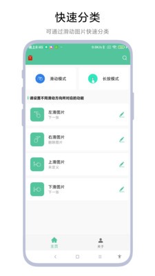 图片滑动分类器是一款手机照片分类管理app。非常不错的一款图片快捷指令管理软件,内置丰富的手势小伙伴们可以根据需求自定义模式,可以精准的帮助我们快速将图片内容完成分类,实用性是非常高的,该软件所占内存是非常小的,满足用户使用需求,感兴趣的用户朋友们快来下载图片滑动分类器吧!